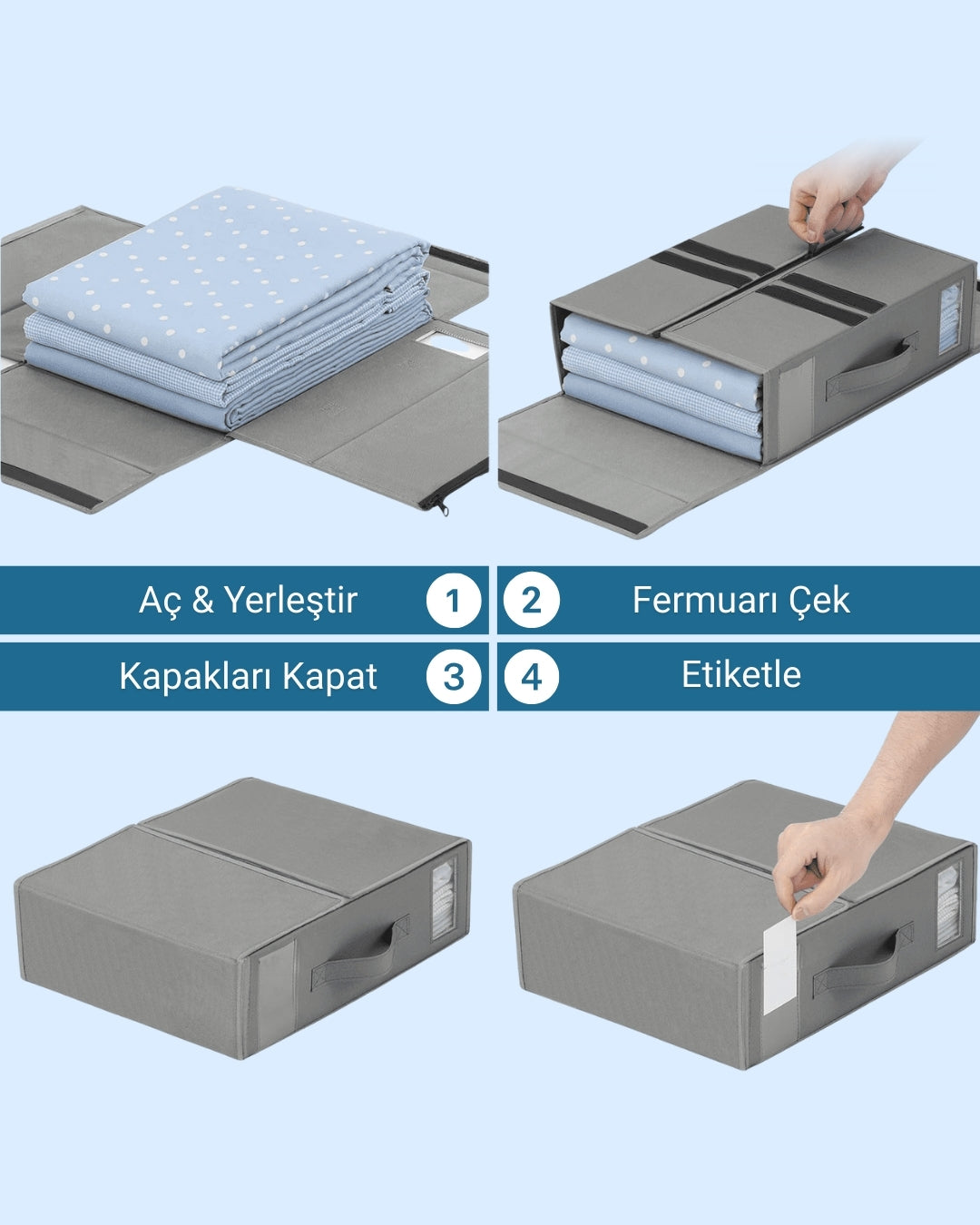 Foldify'ın premium kumaş dokusu ve akıllı katlama sistemiyle %50 daha fazla yer açın. Aradığınız nevresimi saniyeler içinde bulun, düzenin keyfini sürün.